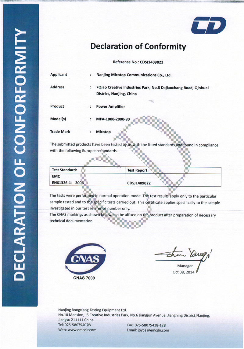 B.功放產品通過CNAS電磁兼容測試、認證