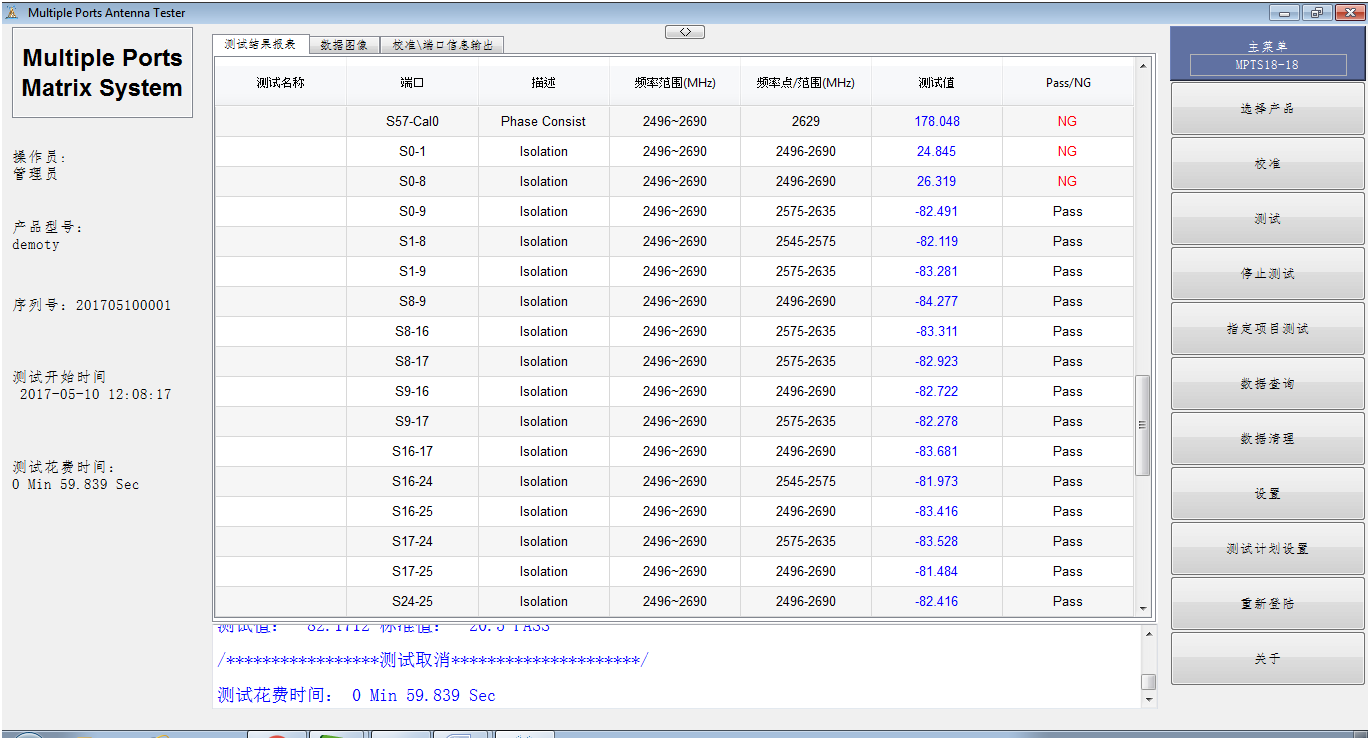 4. 高效的測試效率保證邊測邊調;9口全端口測試時間小于10秒;66口MIMO全端口測試時間小于150秒。